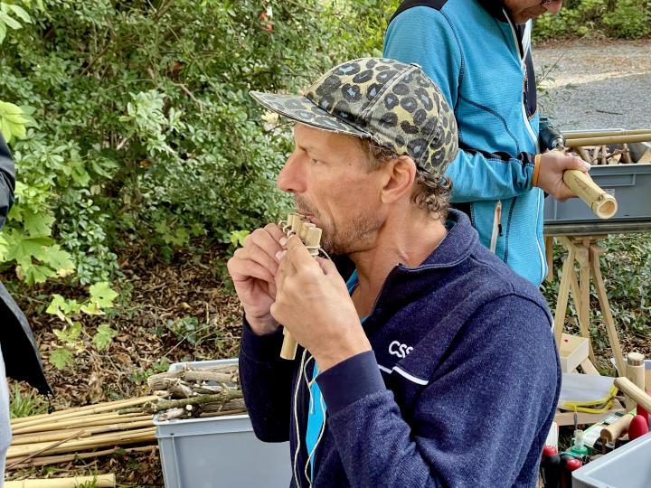 Bist du dabei und baust mit einfachsten Mitteln, einem Taschenmesser, ein bisschen Weidenrinde oder Holunder Pfeifen, Flöten, Trommeln oder sogar ein kleines Saxophon?