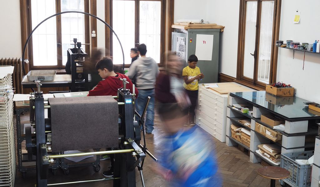 Zusammen erfinden wir Geschichten, spielen mit Worten und tüfteln allerlei sinniges und unsinniges. Ausserdem besuchen wir die DruckStelle in Basel, fangen Bilder zu unseren Geschichten ein und probieren Drucktechniken selber aus. Zum Abschluss gibt's eine kleine, feine Vernissage mit den entstandenen Werken.