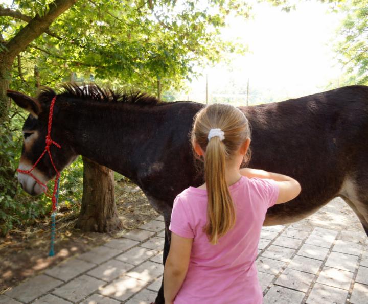 Du darfst die Tiere putzen, im Stall mithelfen und spielerisch Spannendes über sie lernen. Beim Spaziergang kannst du ein Pony führen, reiten oder im Eselwagen fahren. Zum Abschluss grillieren wir am Feuer.